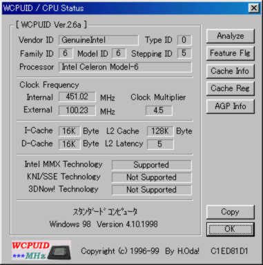 セレロン400はリテール品にて純正のまま使用